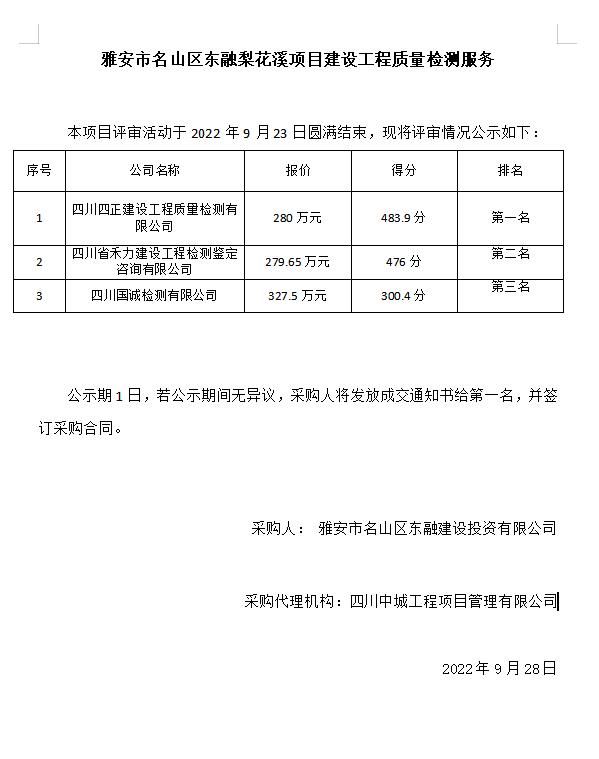 雅安市名山區(qū)東融梨花溪項(xiàng)目建設(shè)工程質(zhì)量檢測服務(wù)