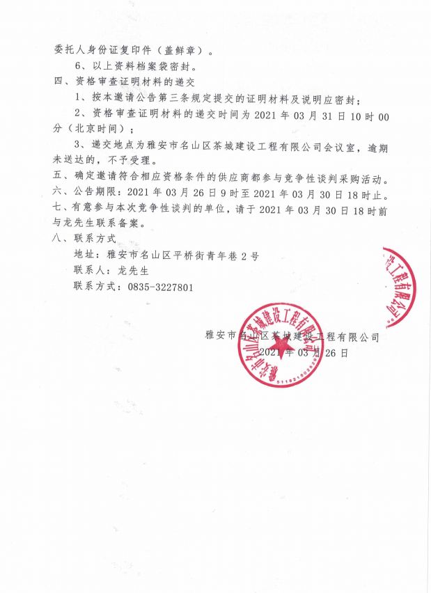 雅安市名山區(qū)茶城建設(shè)工程有限公司及子公司全面審查詢價(jià)公告...